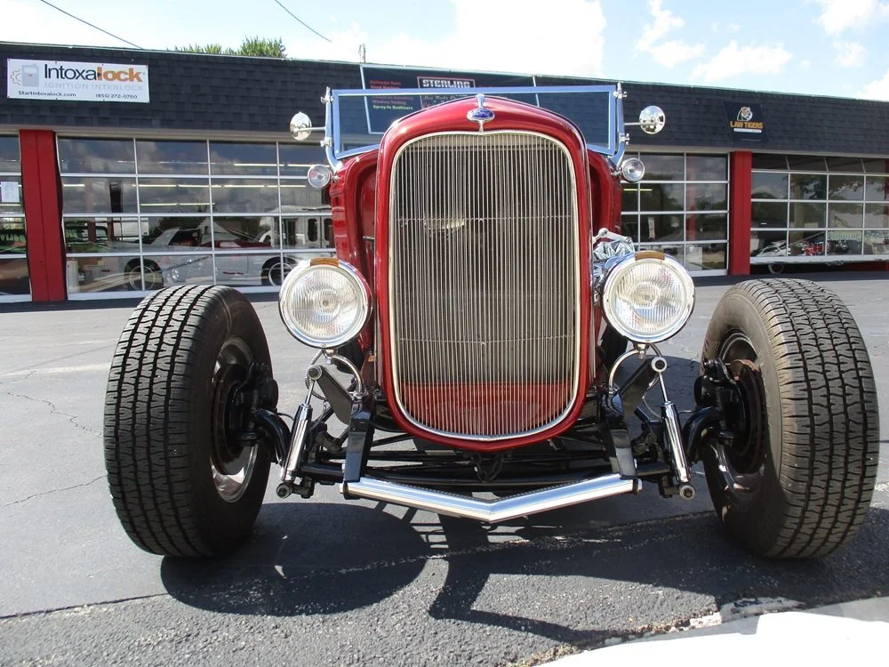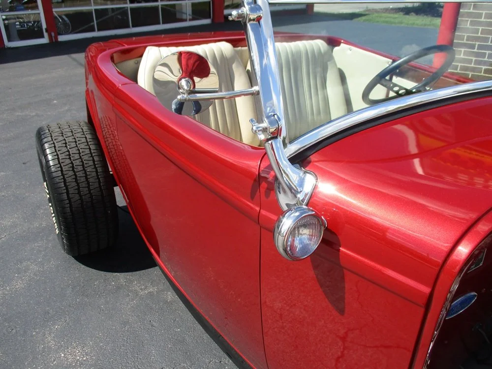 In 1932 Ford revealed a whole new line-up of vehicles. The model B was offered in 7 different body styles and only ran for 3 model years with 1934 being the last. This particular example is a 2-door roadster also referred to as a Highboy. It was produced by TRC Auto who’s mold stretched it 2” and it is finished a gorgeous dark red metallic paint. It has an original 1932 front axle, rear bumper (gas tank) and frame rails. It is now equipped with a Ford 9” posi rear end, coil over shocks and traction bars on the rear end and the front end has a reversed axle, torsion bars, stabilizer bars, chrome shocks and power disc brakes. You will also find a fuel cell and the battery in the trunk with a disconnect under the dash. The heart of this sweet street rod is a 350ci crate engine rated at 350hp that is fed via an Edelbrock 4bbl 750cfm carb with electric choke and an Edelbrock Performer intake. Spark is handled with an electronic ignition, it has ceramic coated shorty headers and it sounds awesome ripping through its 2.5” stainless steel dual exhaust. It is very nicely dressed up with chrome valve covers, a chrome water pump, a chrome radiator overflow and a chrome alternator. It also has billet aluminum pulleys, spark plug wire guides and alternator brackets. Power is put to the 9” rear end via a 700R4 tranny that is shifted by a Speedway shifter and is equipped with a B&M converter lock-up. It has a full leather interior with 6-way power seats that is cream in color and looks amazing. It is equipped with VDO gauges, tilt steering and blinkers. It has a gorgeous 1932 grill with chrome trim and Ford logos, the chrome headlights have blinkers built in, it has a gorgeous chrome windshield that tilts and holds the chrome mirrors as well as the sweet chrome auxiliary lights. It is finished with a gorgeous set of American Racing Torque Thrust Ds wrapped in staggered BF Goodrich Radial T.A.’s that pull the whole look together. It is titled as a 1992 Ford with a 17-digit VIN. Close to $50,000 was spent to build this sweet Highboy and it only has 249 miles on it. We have priced it aggressively so if you like what you see time is of the essence!