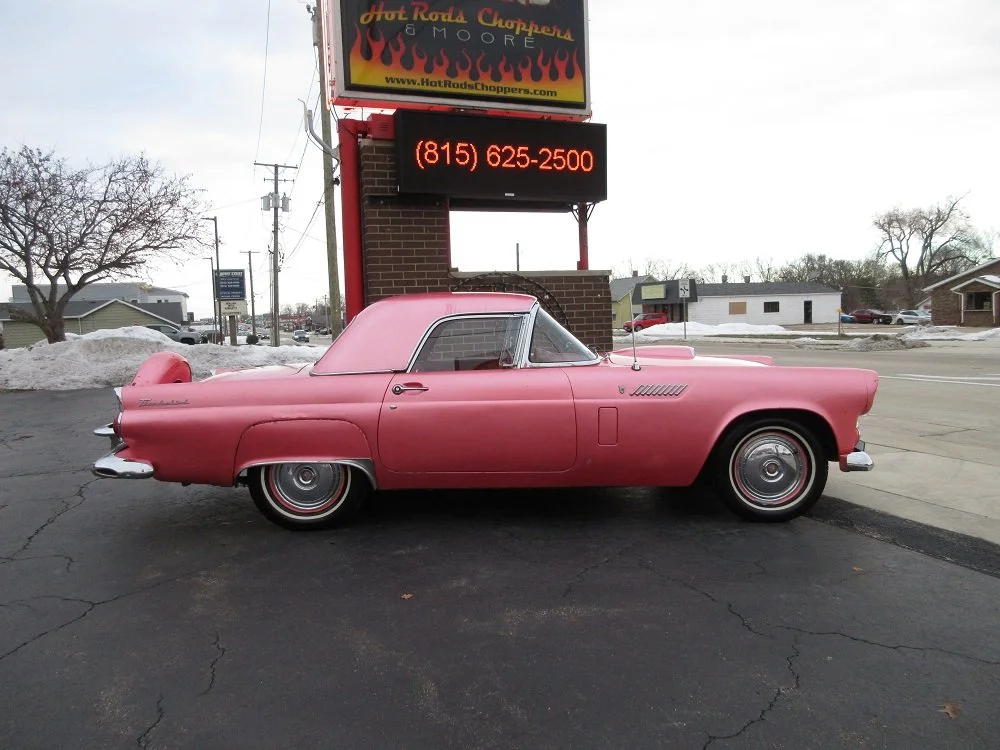 The Thunderbird was first released by Ford in 1955 and was designed to be a stylish personal luxury car that blended sporty performance with an unmistakable American flair. By 1956 it had already become an icon celebrated for its sleek lines, it’s exhilarating feel and timeless presence. This car was originally Thunderbird Grey. During the late 60’s the 2nd owner wanted to purchase a Flamingo Pink but could not find one for sale anywhere. He stumbled across this car with low miles and it was in amazing condition so he decided he was going to have the color changed. It wasn’t just repainted everything was changed including the engine bay, door jambs, interior, etc. The 3rd owner purchased it in 1975 and has owned it since. It retains its original driveline with a 292ci V8 that runs incredibly well and a 3-speed manual transmission that still shifts crisply. In fact, everything is original to the car except for the radiator, electric fuel pump, the downturn exhaust tips and the normal wear and tear items. The car has mostly been used for parades and Sunday cruises. It has been serviced annually even though it has only been driven a few hundred miles each year. The tires are about 10 years old but barely have a thousand miles on them. The original interior is showing its age but it perfect if you a looking for a driver. The same would go with the Flamingo Pink paint job. You can drive it as it is or it would be a great candidate for a full restoration. We have priced it accordingly so if you like what you see we encourage you to reach out before someone else beats you to it!