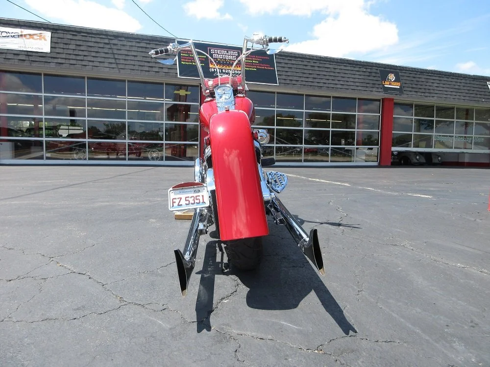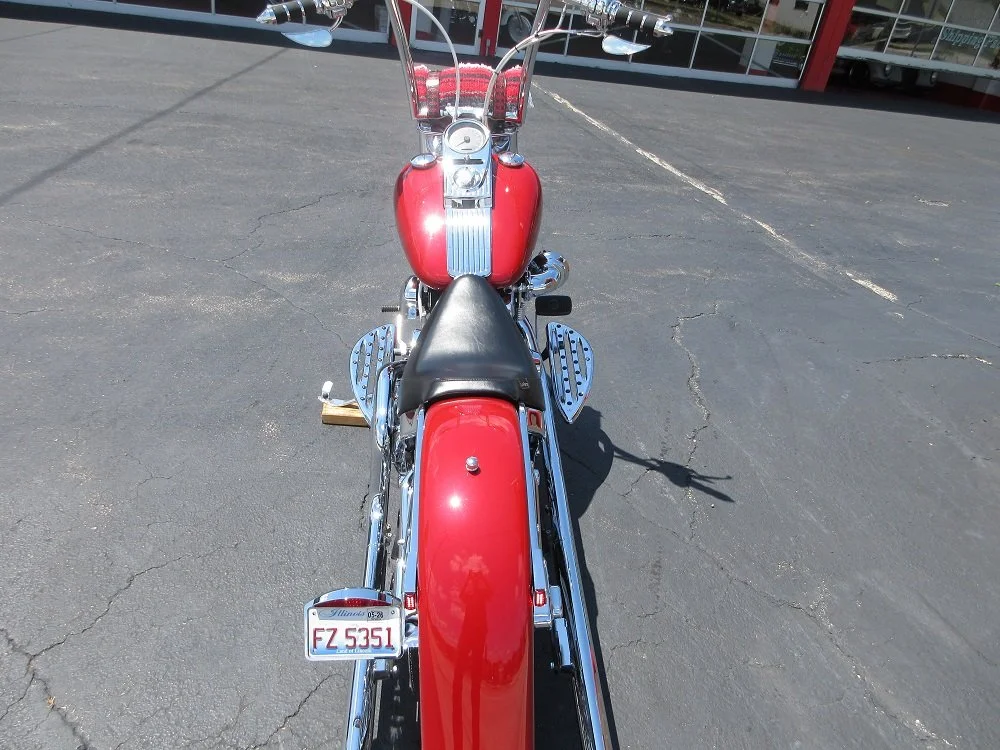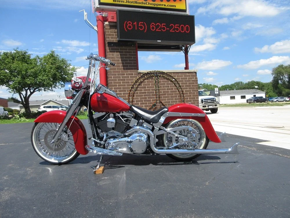 Designed to offer touring accommodations with early dresser styling the Heritage Softail Classic is equipped with a smooth riding black and chrome Twin Cam 88B engine. This particular example underwent a complete transformation to make it the sweet Cholo Softail that you see here. It was lowered front and rear and fit with a sweet set of fat spoke rims with a 21 up-front and an 18 on the rear both wrapped in whitewall tires. During the transformation there was an incredibly long list of chrome parts installed which include the chrome swing arm, 14” monkey bars, switch housings, switches, levers, billet dash, front end, axle covers, rotors, caliper covers, pulley, upper & lower belt guards, frame covers, primary cover, tranny cover, regulator cover, engine covers, tappet block covers, Arlen Ness mirrors, Arlen Ness floorboards, Pro 1 breathers, the performance air intake and it sounds just plain nasty ripping through its Samson 36” Fishtail exhaust. You will also appreciate that the rear blinkers are hidden in the fender struts, it has been upgraded with a Dynojet Power Commander V, it has Avon grips, a sweet La Pera solo seat as well as the iconic Mexican blanket roll strapped to the handlebars. Within the last 1,000 miles the bike was completely serviced which included a new battery, new gaskets, new tires, brakes, fresh fluids, new filters and a cam chain tensioner. All said and done well over $10,000 was spent transforming this bike into the sweet Cholo Softail you now see and that did not include the original cost of the bike. We are serious about finding it a new home and have priced it accordingly so if you like what you see we suggest that you reach out before it’s too late!