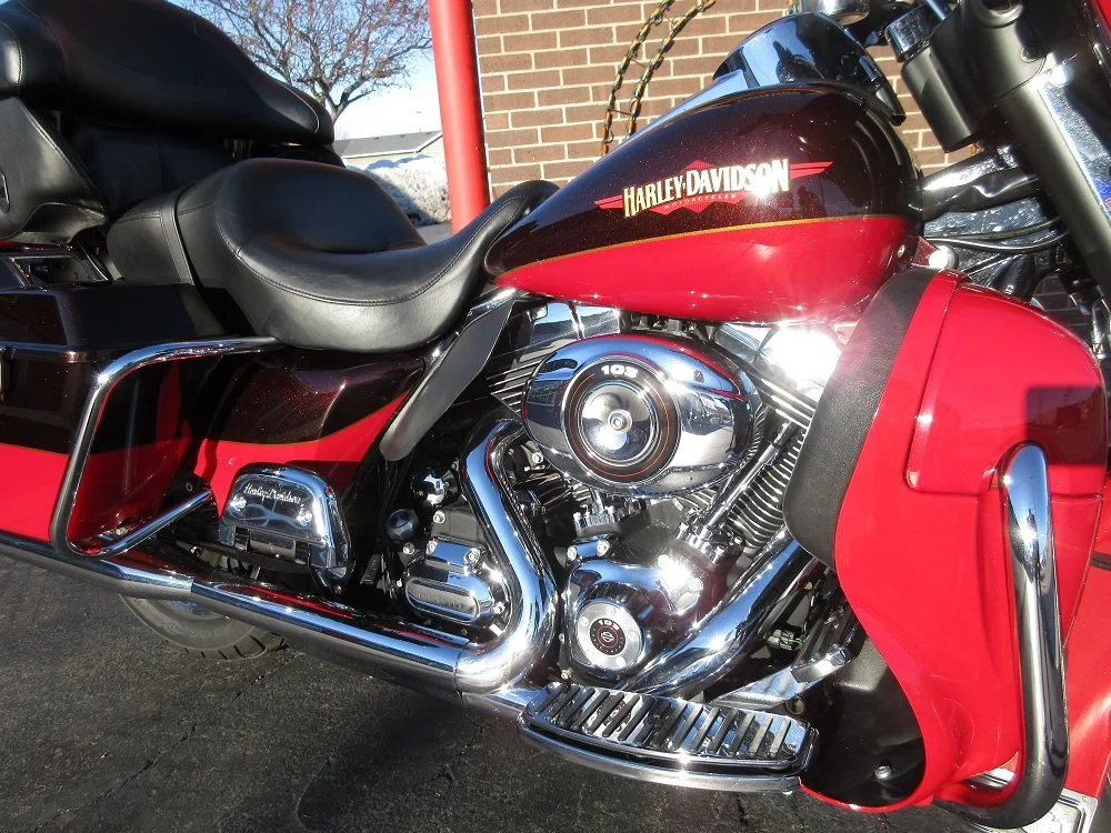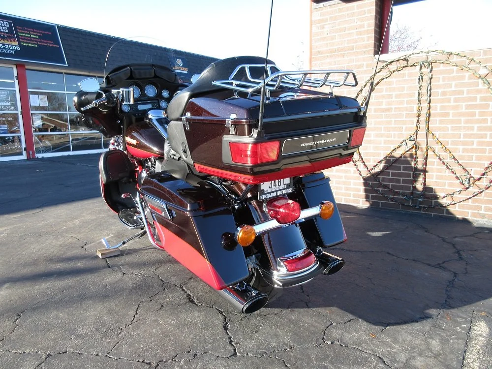 The 2010 Harley Davidson Electra Glide Ultra Limited is a premium touring motorcycle that offers enhanced performance and features over the popular Ultra Classic. The Limited model features items that have previously only been offered as accessories on regular production Harley Davidson Touring models. The package starts with a Twin Cam 103” engine that delivers 10% more torque than the 96” engine for a significant upgrade in performance. Other upgrades include the Brembo triple disc brakes with ABS, heated hand grips, the Smart Security System, a premium Tour-Pak luggage rack with a 12-volt Tour-Pak power supply and saddle bag liners. You will also find a special two-tone paint scheme, 28 spoke cast aluminum wheels with contrasting chrome accents, new titanium tone instrument faces and distinctive Ultra Limited badges in five locations. This particular example is Merlot Sunglo/Cherry Red Sunglo and still shows like new. It has been nicely optioned with upgraded heated hand grips, driver floorboards with matching shift levers, shift pegs, brake lever and brake pedal. You will also appreciate the H-D 3 pouch windshield storage, the cup holder and the axle covers. It also has a Stage I air breather, a Delphi Direct Link Race Tuner and it sounds just plain nasty ripping through its Vance & Hines true duals. It is a 2-owner bike that has been serviced regularly. During its 17,500-mile service it received new brakes and tires. It was last serviced at 22,403 miles and it received a new battery at 23,361 miles. It is in excellent condition and everything works as it should. We have priced it aggressively so if you like what you see we encourage you to reach out before someone else beats you to it!