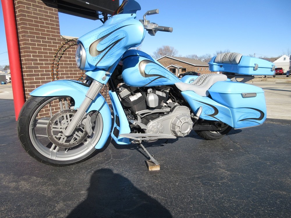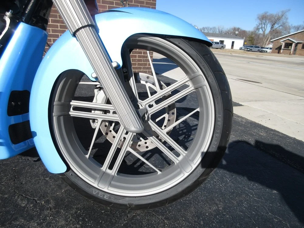 This sweet Hot Rod Bagger was pretty much stock up until 2023 when it was sent to Dave Dupor of DD Custom Cycles for a complete transformation at 4,853 miles. During the transformation it was converted to a fat front tire with a matching set of SMT wheels that included a 21x5.5 rim with a 13” rotor and a 16” rear with matching rotor and pulley. It was upgraded with an S&S cam plate with tensioners and high-volume oil pump. Screamin’ Eagle provided the high-volume oil pan that holds an extra quart of oil. Arlen Ness provided the lower fork legs with matching cans, mirrors, levers as well as covers for the rocker boxes, timer, tranny and primary. Covington provided covers for the clutch, master cylinders, ignition as well as the floor boards, shifter arm, shift peg, shift linkage, brake arm and brake pedal. All of these parts and more were sent out to be powder coated a Flat Silver which really look amazing. The front end has a Fat Bagger fat tire kit who also provided the drop seat kit. Voodoo Bikeworks provided the molded tank and center console. Topshop provided the side covers, 14 and up one-touch bags and sexy stretched rear end. The custom paint job by Alcade Customs really looks amazing with the Flat Silver powder coating everywhere and the gorgeous one-of-a-kind Sinister seat. It also has Legends shocks front and rear and sweet stereo that consists of an Alpine Double-Din head unit, A SounDigital EVOX 400.2 amp and Ground Zero GZ6.5 fairing speakers. It is fed via a gorgeous Trask intake and it sounds just plain nasty ripping through its Akrapovik 2-into-1 performance exhaust. This bike is a multiple show winner that’s trophies include Best in Show Bagger at the 2023 Donnie Smith Show in Minnesota. Over $68,000 was spent on the creation of this gorgeous bike and it has only been ridden 366 miles since its completion. It is in pristine condition and everything works as it should. We have priced it for a quick sale so if you like what you see we encourage you to reach out before it is too late!