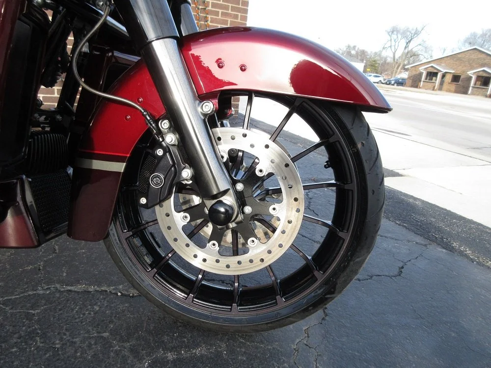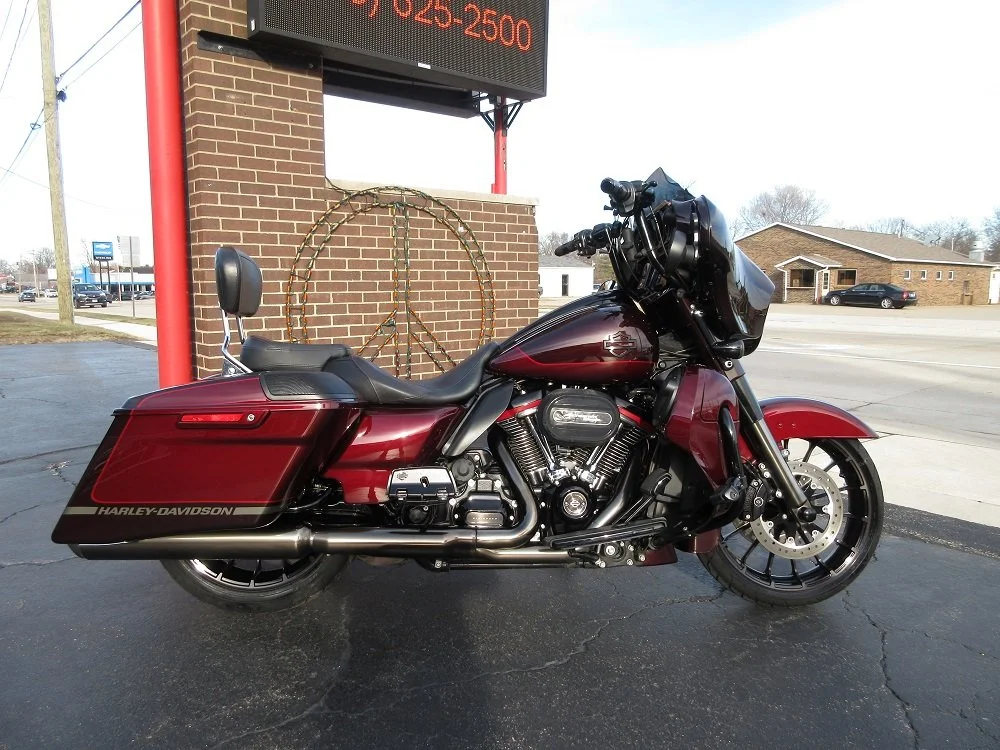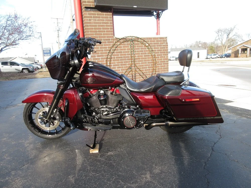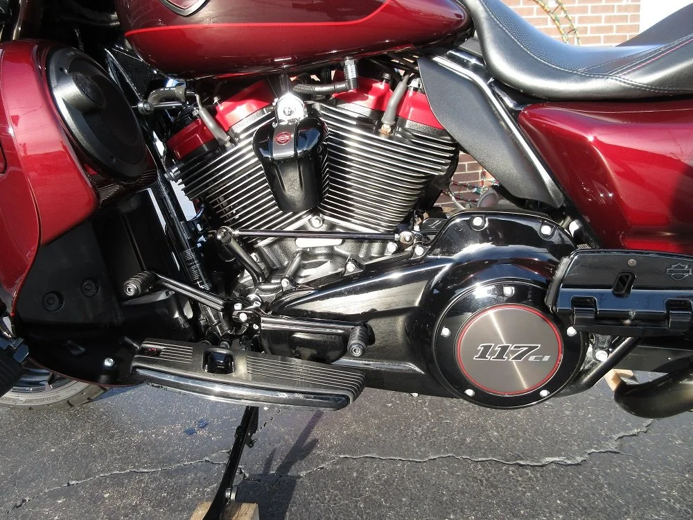 The FLHXSE exudes all that is badass about Harley’s infamous hot rod bagger. For 2019 Harley made some big improvements to the Street Glide Special the most significant of which is the 117” Milwaukee Eight powertrain with an impressive 125-foot pounds of torque that is smooth as silk. Other upgrades include the new big screen BOOM! GTS Infotainment System with Advanced Audio Package that features 3 amps delivering 900 watts of clear power to six sets of component speakers which is exclusive to this model. Harley also added a new Daymaker Adaptive LED headlight, electronic reflex linked ABS brake system with cornering control, traction control (TCS), a Drag-torque Slip Control System (DSCS) and a high-performance suspension. It also boasts exclusive styling with its 19” gloss black Talon front wheel, matching 18” rear wheel, Kahuna Collection shifter pegs, brake pedal cover, caps, heated grips, rider and passenger floor boards, Blaze Red engine rocker box bands and it was finished in a gorgeous two-tone Wineberry / Black Forest that just sparkles in the sun. Dealer add-ons include the 12” Meat Hook bars, mirror lowering kit, RAM phone mount, matching highway pegs and it sounds incredible ripping through its TAB Performance exhaust system. It has been dealer serviced every 5,000 miles without fil and it received new tires and brakes at 30,335 miles. This bike is in excellent condition and in need of nothing. If you like what you we encourage you to reach out before someone else beats you to it!