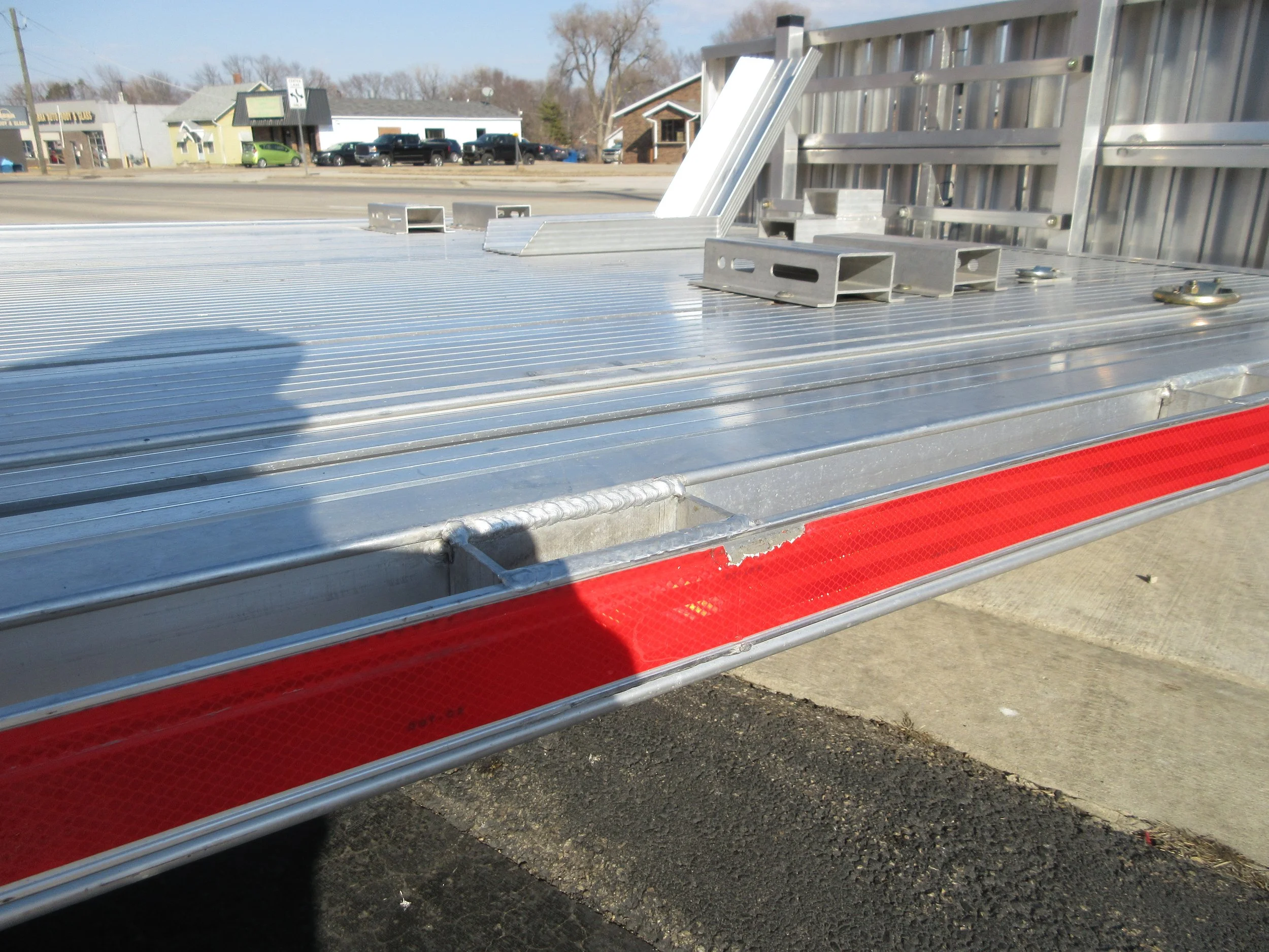The 2021 Triton CH18 is an 18-foot all-aluminum car hauler built with a fully welded, corrosion-resistant extruded frame. It features a dropped rear beavertail deck for large vehicles as well as long, heavy-duty ramps for easy loading of low-clearance vehicles. The ramps are stored on a front rack that gives you quick access and also enables them to double as rock guards. The trailer is equipped with tandem rubber torsion axles with independent suspension for a smooth ride, electric brakes on both axles and diamond plate fenders that are removeable on the driver’s side for vehicle access. It features 3 “Quickslide” channels and 6 heavy-duty D-rings that can be moved in the channels for unlimited tie-down options. Other notable features include the sealed LED lights and wiring, a fully welded A-frame tongue and a 2,000lb tongue jack with skid plate.